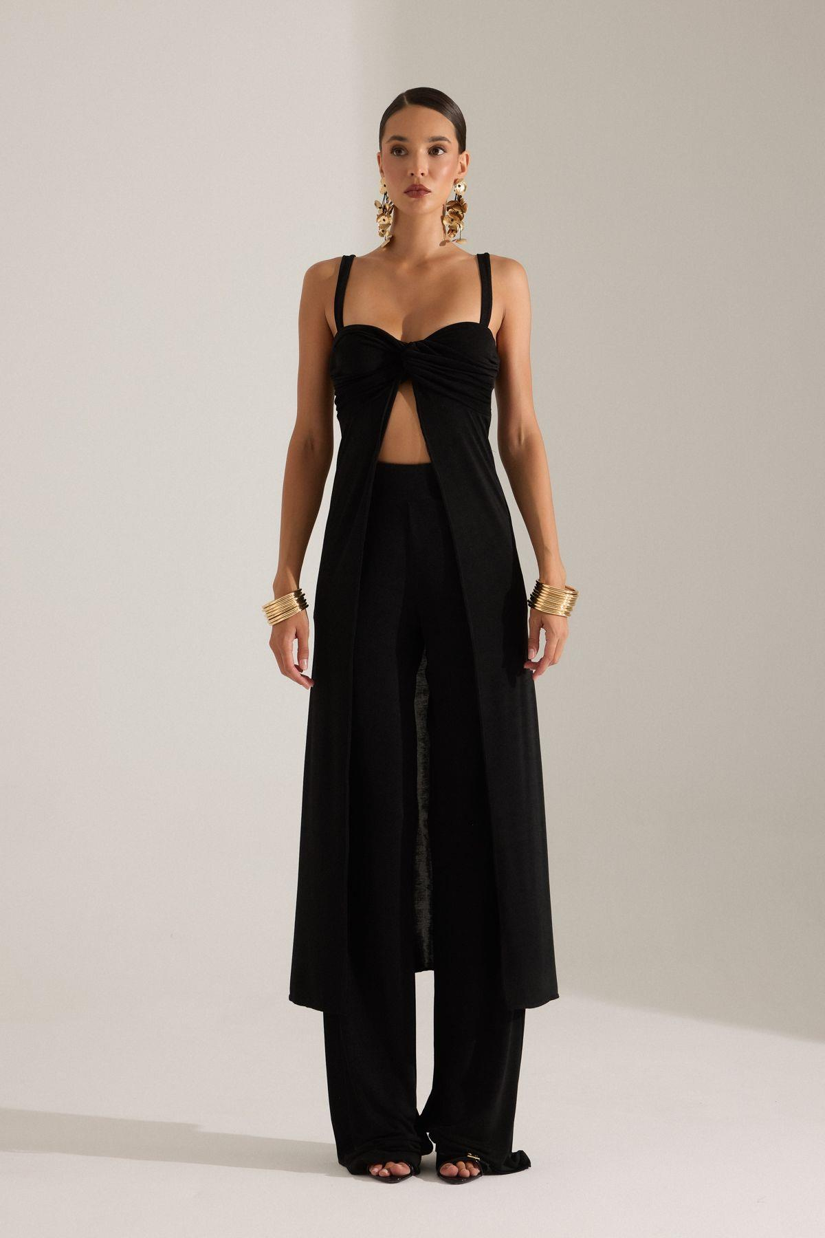 BALLERINA SİYAH UZUN ASKILI BLUZ
