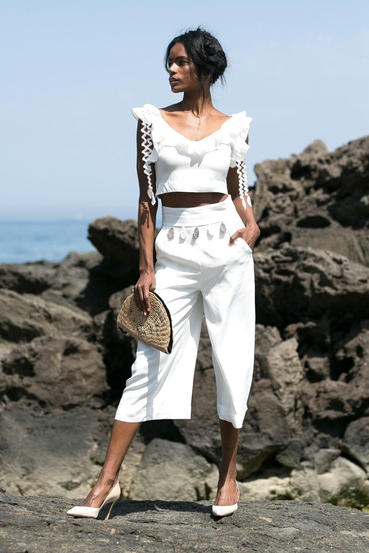 Kadın Beyaz El İşi Oya Detaylı Pantolon BETTY5049