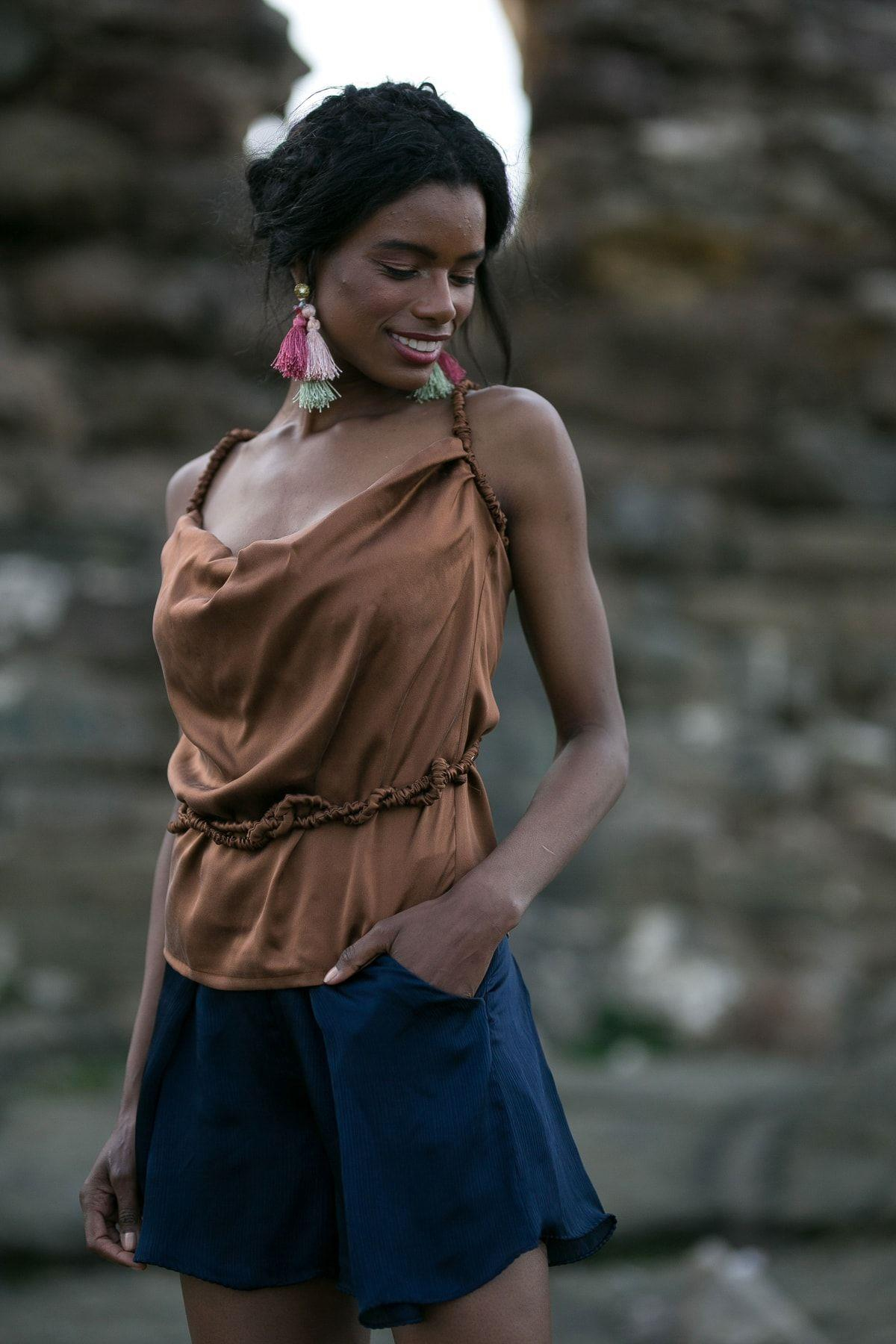Kadın Kahverengi 100 İpek Askılı Bluz BETTY5027