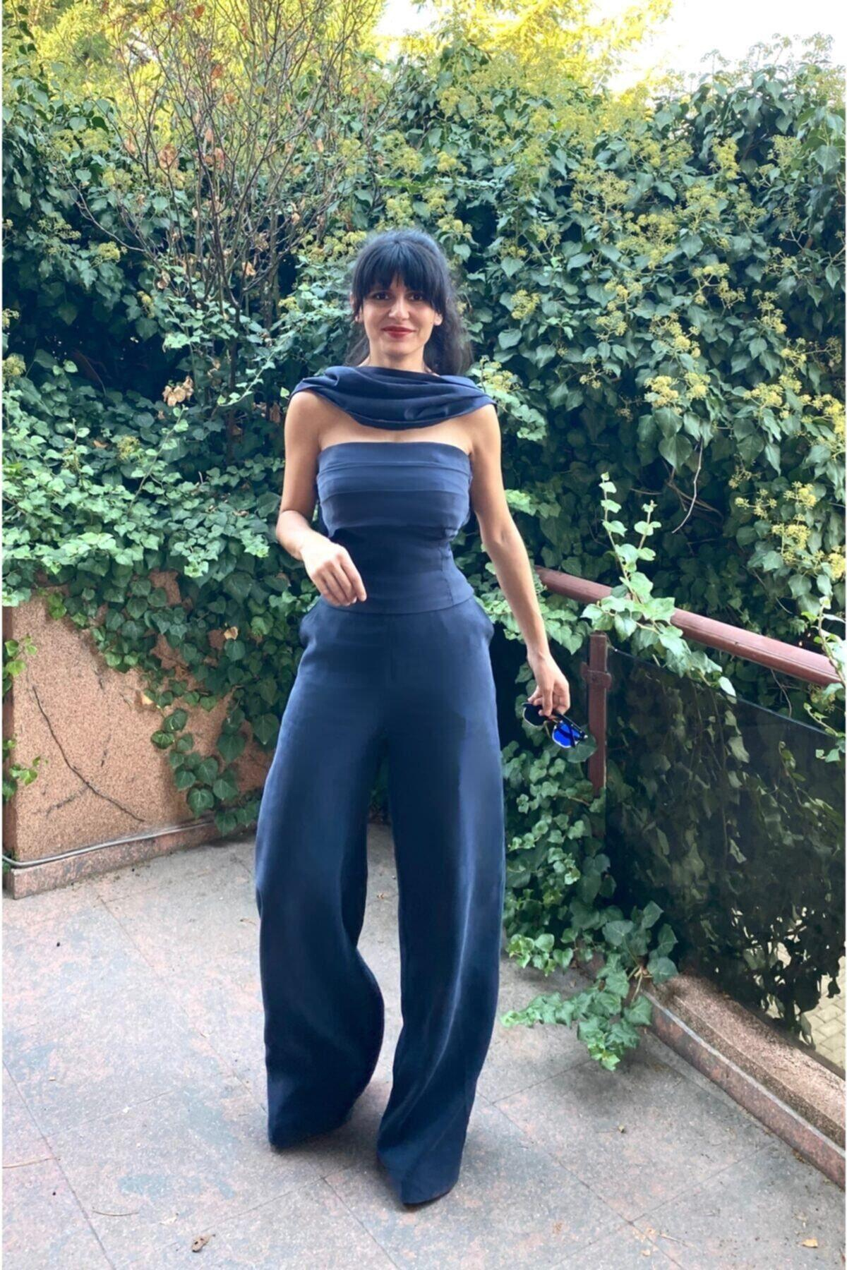Koyu Mavi Straplez Bluz