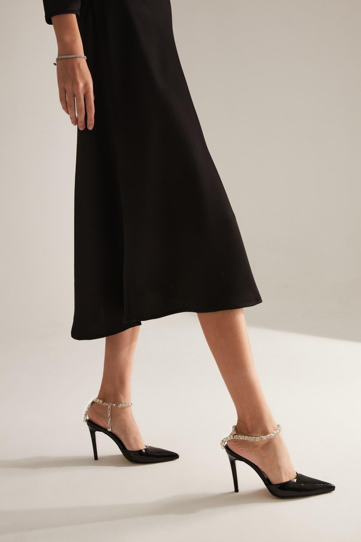 Lucy Bilekten Taşlı Siyah Rugan Deri Topuklu Ayakkabı