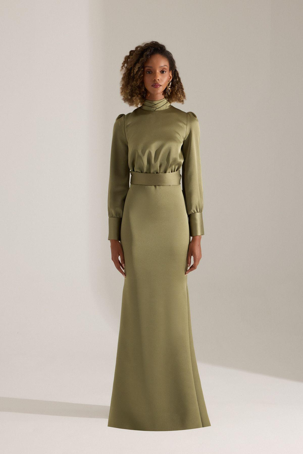 - Fermuarlı kapama özelliği ile kolayca giyilip çıkarılabilir, pratik kullanım sunar.; - Fashion Forward koleksiyonuna ait bu elbise, modern ve şık tasarımıyla dikkat çeker.; - Sürdürülebilir malzemelerden üretilmiş olup çevre dostu bir tercih yapmanızı sağlar.; - Kutulu ambalajıyla hediye olarak da tercih edebileceğiniz ideal bir seçenektir.; - Korsaj detayı sayesinde vücut hatlarınıza mükemmel uyum sağlayarak zarif bir görünüm kazandırır.; - Tesettür giyim koleksiyonundan gelen bu elbise, tesettür modasına uygun şıklığı temsil eder.; - Kemerli yapısı belinizi zarifçe sararak feminen bir siluet oluşturur.; - Düz kesimiyle rahatlık ve konforu ön planda tutarken her ortamda stil sahibi görünmenizi sağlar.; - Tüm sezonlarda rahatlıkla tercih edebileceğiniz çok yönlülükteki tasarım, gardrobunuzun vazgeçilmez parçası haline gelir.; - Balık silueti sayesinde feminen çizgilere sahip olan bu elbise, vücut hatlarınıza sofistike bir dokunuş ekler.; - %100 polyester materyali ile dayanıklılık ve uzun ömürlü kullanım vaat ederken aynı zamanda kolay bakım imkanları sunar.; - Kemerli yapısı sayesinde kişisel zevkinize göre ayarlama imkanınız bulunur; böylece her zaman mükemmel oturuşa sahip olursunuz.; - Astarlı oluşu hem konforlu hem de estetik bir iç yapıya sahip olmasını garanti eder.; - Saten dokuması lüks hissiyatını yansıtırken pürüzsüz yüzeyiyle göz alıcı parlaklığa kavuşmanızı sağlar.; - Cepsiz tasarım minimalizmi benimseyerek sade ama etkileyici bir tarz sergiler.; - Kuru temizleme önerisiyle bakımı kolaylaşan bu elbise, uzun süre ilk günkü gibi kalmasını sağlar.; - Maxi boyu ile zarafeti tam anlamıyla yakalamanız için idealdir; hem özel günlerde hem de günlük kullanımda rahatlıkla tercih edebilirsiniz.; - Kadın/kız cinsiyetine hitap eden bu model, her yaştan kadının gardrobunda yerini almayı hak ediyor.; - Slim kalıbı sayesinde vücut hatlarınıza mükemmel uyum sağlayarak fit bir duruş sergiler.; - Dokuma kumaşı kaliteyi hissettiren bu parça, dayanıklılığıyla ön plana çıkarken aynı zamanda şıklığınızdan ödün vermemenizi sağlar.; - Türkiye menşeli olmasıyla yerel üretim avantajlarından faydalanırken uluslararası standartlarda kaliteye sahip olduğunu kanıtlar.; - Düğün/nikah ortamları için ideal olan bu elbise ile unutulmaz anların keyfini çıkarırken stilinizden ödün vermeyin.; - Hakim yakası sayesinde modern ve şık görünümün yanında zarif detaylara da önem verildiği görülür.; - Düz deseniyle sadeliği sevenler için mükemmel bir seçimdir; zamansız parçalar arasında yerini alacak niteliktedir.; - Saten materyaliyle lüks hissiyatını yansıtan bu elbise, özel günlerdeki şıklığınızın tamamlayıcısı olacak.; - Uzun kollu tasarım soğuk havalarda ekstra koruma sunarken şıklığınızdan da taviz vermez.; - Uzun kol boyu mevsimsel geçişlerde ideal konforu sağlarken aynı zamanda zarif duruşunu korur.